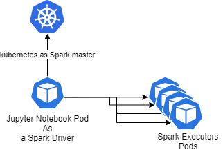 Jupyter Notebook이 driver역할을 하면서 executor를 pod형태로 실행하는 개념입니다.